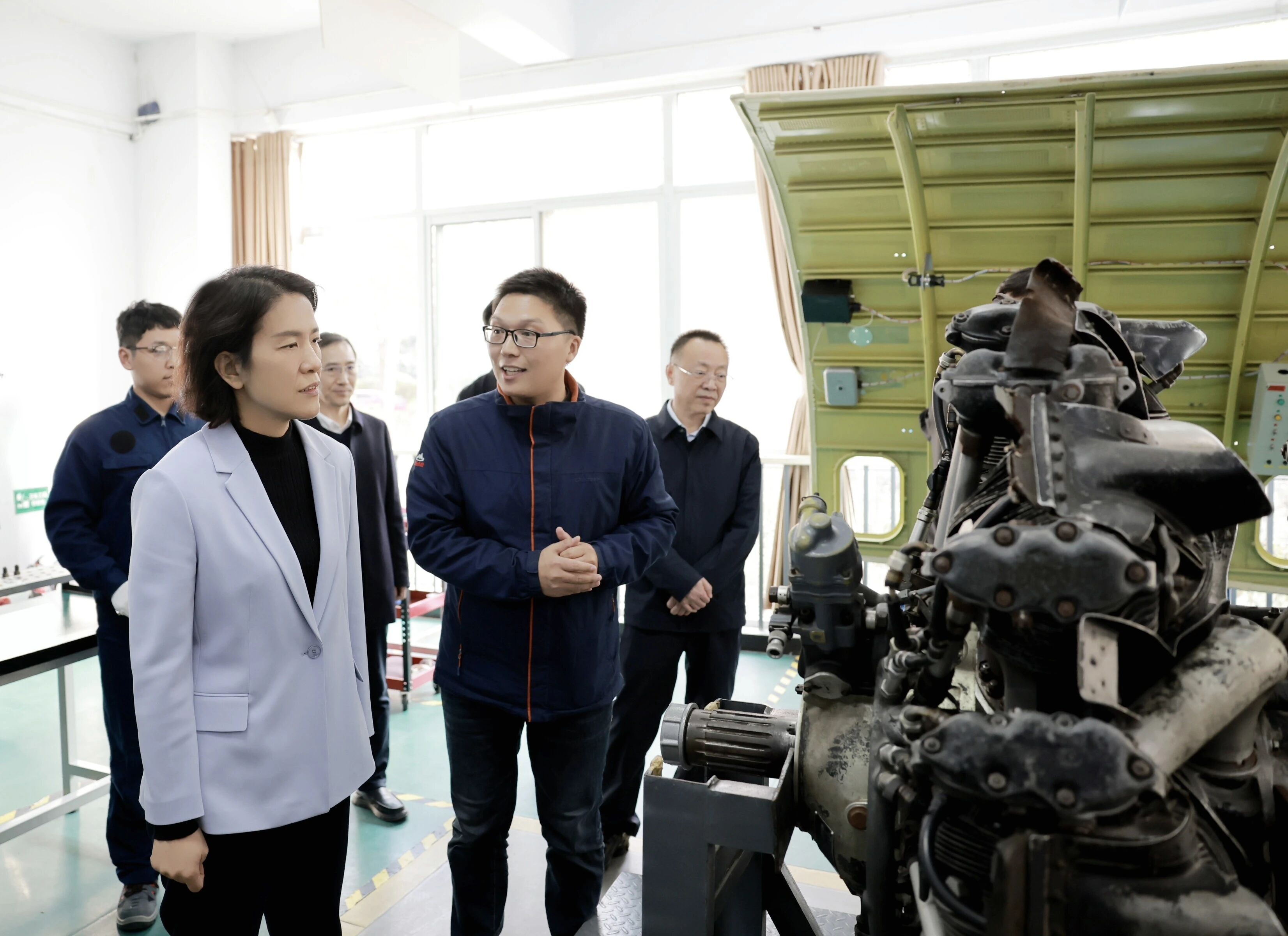 航空工程學(xué)院建有無人機應(yīng)用技術(shù)中心、航空服務(wù)實訓(xùn)中心、飛機發(fā)動機維修中心等,學(xué)生正在老師指導(dǎo)下進行實訓(xùn)操作。楊小菁實地察看了解情況,并與師生親切交談,指出要充分發(fā)揮區(qū)位、交通、產(chǎn)業(yè)等優(yōu)勢,加強航空產(chǎn)業(yè)全產(chǎn)業(yè)鏈人才培養(yǎng),推動教育鏈、人才鏈與產(chǎn)業(yè)鏈、創(chuàng)新鏈深度融合,以人才促創(chuàng)新、引產(chǎn)業(yè),為經(jīng)濟發(fā)展培育增長點、注入新活力。